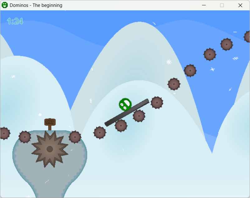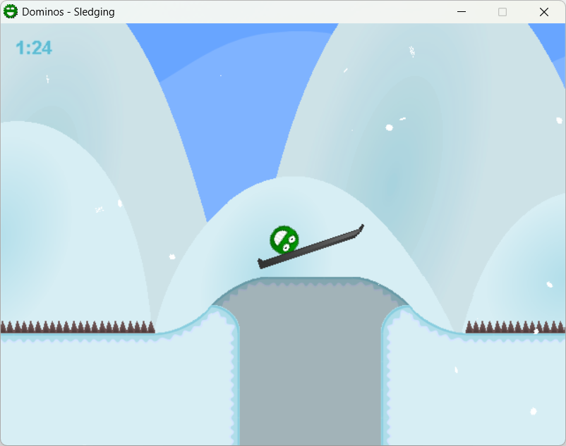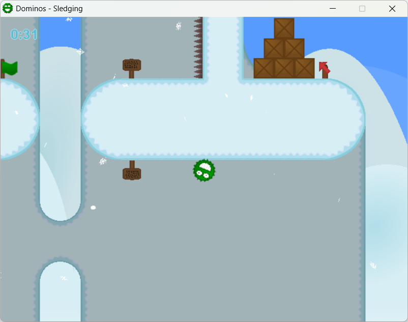 Dominos 2: Winter Edition is a physics based platformer where you play as a little green alien who can roll around and stick to things. In story mode, after your space ship crash lands on earth, navigate the snowy landscape to try and find your way back home, by surfing on dominos, carefully crawling along ceilings, sledding over spikes, and solving fun puzzles.
