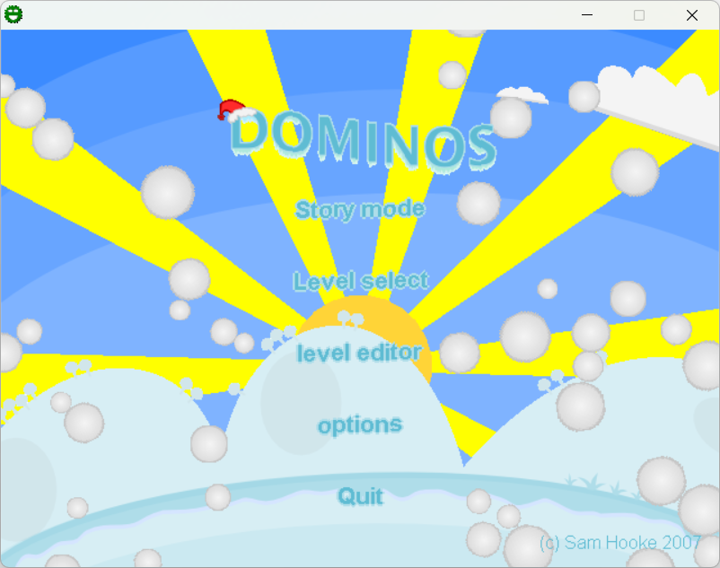 Dominos 2: Winter Edition was originally released in December 2007 for the YoYo Games Winter Competition, in which it was awarded an honourable mention.