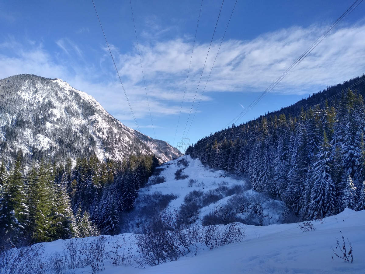 Lanham Lake Snowshoe23 December 2020No trip report yet.Looking along the line of pylons.A close look at the pylon base.Lanhm Lake with the sun just about to vanish.Snowy lumps amidst the trees.Snow logs amidst the trees.Taggedsnowshoeslippy map