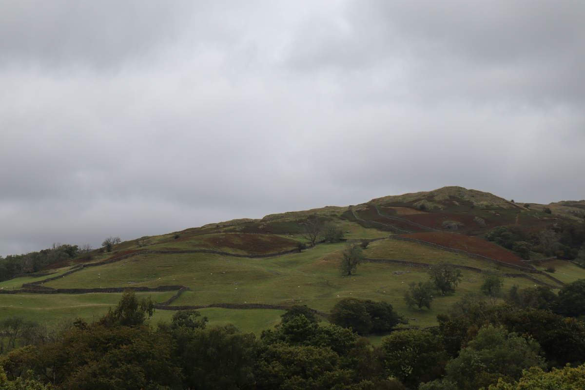 Leaving the top end of the woods, we followed the road uphill before turning left at a stile on the path towards Wansfell Pike. Though we did not head for the summit, but turned right to follow the old road track down to Blue Hill Road.
